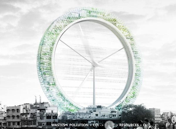 Похожий на гигантскую турбину небоскреб LO2P будет находиться в Нью-Дели, в одном из наиболее загрязненных в мирегородов, в связи с экспоненциальным ростом численности населения и автомобилей. Идея этого небоскреба заключается в переработке старых автомобилей и использовании их в качестве строительного материала для новой конструкции. Здание спроектировано как гигантские легкие, которые будут очищать воздух Нью-Дели через серию крупномасштабных теплиц, которые служат в качестве фильтров, поглощающих взвешенные частицы воздуха. Обработанное тепло и углекислый газ будут использоваться для выращивания растений, вырабатывающих биотопливо.