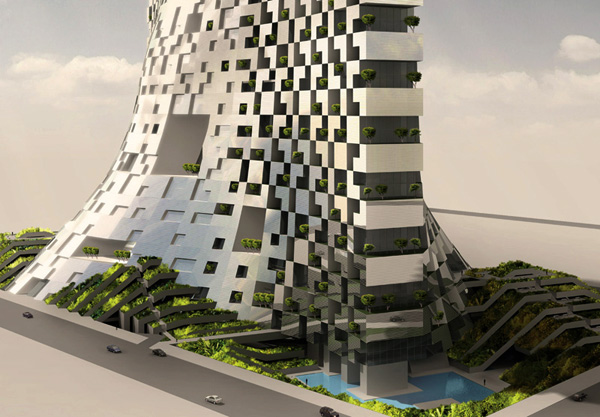 Предлагаемое здание находится на набережной Сингапура и будет служить в качестве дополнения к уже существующим финансовым районам. Учитывая климат Сингапура и его дефицит водных ресурсов, акцент дизайна сделан на создании стратегий по использованию естественной вентиляции, дождевой воды и солнечного света. Башня наклонена на 20 градусов в сторону набережной. Кроме того, проект нацелен на то, чтобы создать идеальный дом с собственным садом, в непосредственной близости от центра Сингапура. Основание, которое напоминает местность с богатой растительностью, формирует два открытых бассейна, скверы, спортивные сооружения.