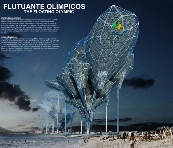 Основная идея Блуждающего олимпийского комплекса - это создание вертикальных перевернутых небоскребов, которые будут служить в качестве принимающей стороны во время игр, и в дальнейшем преобразованы в плавучий город с жилыми домами, зонами отдыха, офисами и другими инфраструктурами. Предполагается воплощение этого проекта на Олимпийских играх в Рио-де-Жанейро.