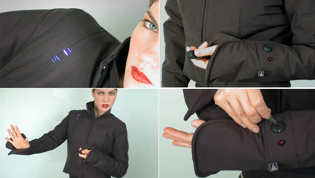 Дизайнер Адам Уайтон позаботился о женщинах и создал No-Contact, электрошоковый жакет, который будет защищать женщину при возможном нападении. Жакет изготовлен из ткани, которая применяется для изготовления бронежилетов.
