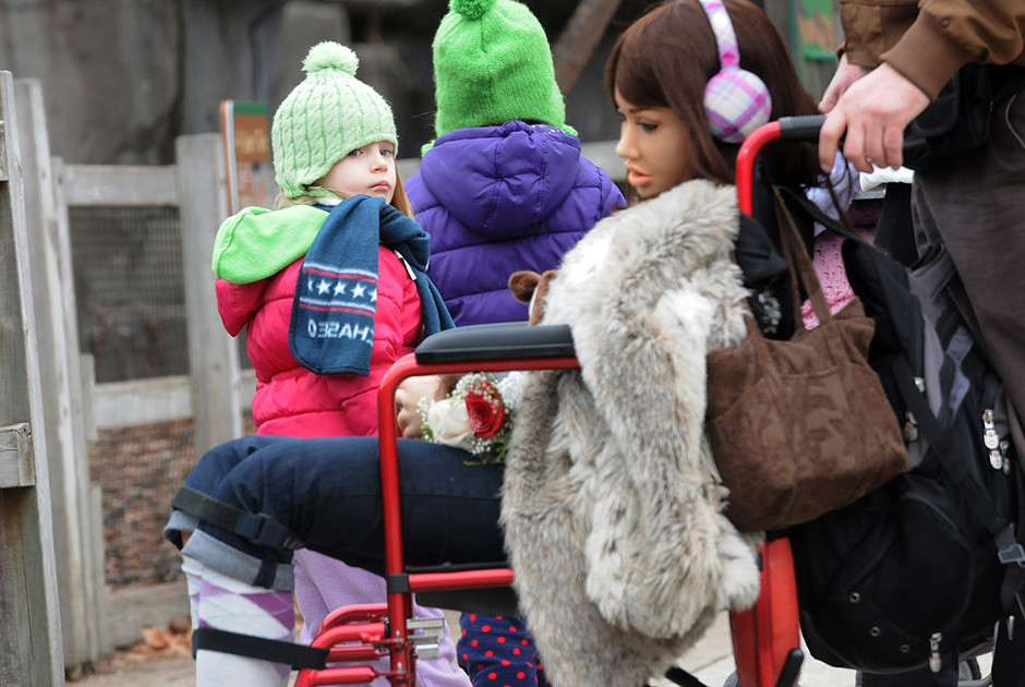 Джеки хоть и кукла, но тяжелая, поэтому Джон специально для нее приобрел коляску, чтобы удобнее было перемещаться.