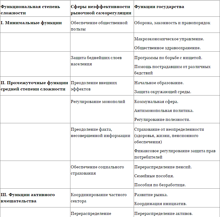 Табл. 1. Функции государства в условиях рыночной экономики.