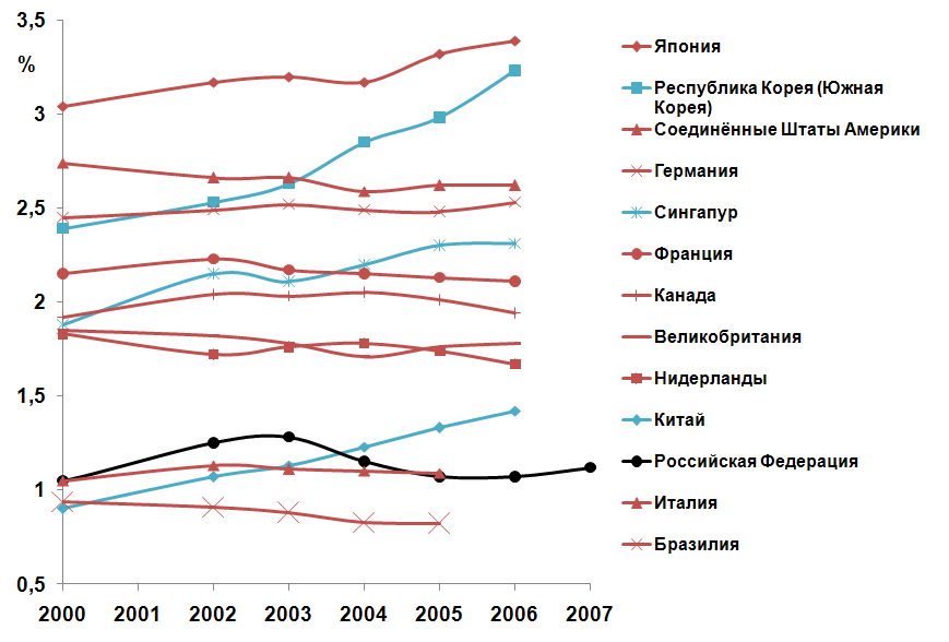 Рис.14. Внутренние расходы на исследования и разработки (в процентах к ВВП), %