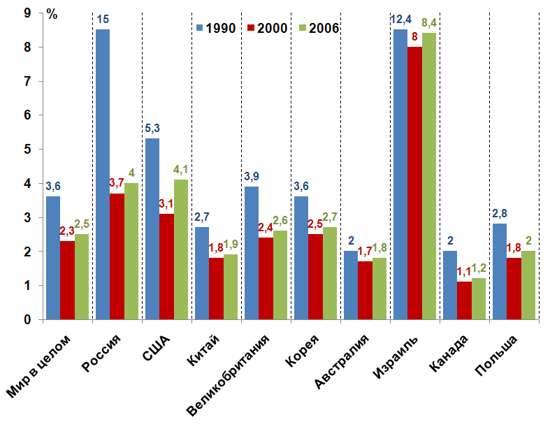 Страны и регионы 2008. Статистический справочник Всемирного банка. М., 2009.